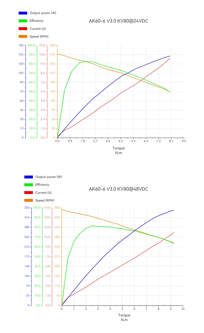 _x000D__x000D_|_x000D_ category |_x000D_ Model |_x000D_ Rated Voltage (V) |_x000D_ Rated Power (W) |_x000D_ Rated Torque (Nm) |_x000D_ Rated Current (A) |_x000D_ Rated Speed (RPM) |_x000D_ Peak Torque (Nm) |_x000D_ Peak Current (A) |_x000D_ No-load Speed (RPM) |_x000D_ Reduction Ratio |_x000D_ Weight (G) |_x000D_ Size (diameter *length) MM |_x000D_ Driver Board |_x000D_ Encoder |_x000D_ | --- | --- | --- | --- | --- | --- | --- | --- | --- | --- | --- | --- | --- | --- | --- | _x000D__x000D__x000D_|_x000D_ AK Series |_x000D_ AK60-6 V3.0 |_x000D_ 24/48 |_x000D_ 74 |_x000D_ 3 |_x000D_ 3.8 |_x000D_ 233/490 |_x000D_ 9 |_x000D_ 10.3/11.2 |_x000D_ 320/640 |_x000D_ 6:1 |_x000D_ 380 |_x000D_ ?79*43 |_x000D_ Yes |_x000D_ Single |_x000D_ _x000D_|_x000D_ AK Series |_x000D_ AK10-9 V3.0 |_x000D_ 48 |_x000D_ 442 |_x000D_ 18 |_x000D_ 10.7 |_x000D_ 235 |_x000D_ 53 |_x000D_ 31.9 |_x000D_ 320 |_x000D_ 9:1 |_x000D_ 940 |_x000D_ ?98*61.7 |_x000D_ Yes |_x000D_ Dual |_x000D_ _x000D_|_x000D_ AK Series |_x000D_ AK10-9 V2.0 KV60 |_x000D_ 24/48 |_x000D_ 430 |_x000D_ 18 |_x000D_ 10.6 |_x000D_ 109/228 |_x000D_ 48 |_x000D_ 29.8 |_x000D_ 160/320 |_x000D_ 9:1 |_x000D_ 960 |_x000D_ ?98*61.7 |_x000D_ Yes |_x000D_ Dual |_x000D_ _x000D_|_x000D_ AK Series |_x000D_ AK60-6 V1.1 KV80 |_x000D_ 24 |_x000D_ 74 |_x000D_ 3 |_x000D_ 3.8 |_x000D_ 233 |_x000D_ 9 |_x000D_ 13.1 |_x000D_ 320 |_x000D_ 6:1 |_x000D_ 368 |_x000D_ ?79*39.5 |_x000D_ Yes |_x000D_ Single |_x000D_ _x000D_|_x000D_ AK Series |_x000D_ AK10-9 V2.0 KV100 |_x000D_ 24/48 |_x000D_ 720 |_x000D_ 15 |_x000D_ 16.2 |_x000D_ 205/421 |_x000D_ 38 |_x000D_ 41.2 |_x000D_ 266/533 |_x000D_ 9:1 |_x000D_ 960 |_x000D_ ?98*61.7 |_x000D_ Yes |_x000D_ Dual |_x000D_ _x000D_|_x000D_ AK Series |_x000D_ AK60-6 V1.1 KV140 |_x000D_ 24 |_x000D_ 130 |_x000D_ 3 |_x000D_ 6.5 |_x000D_ 420 |_x000D_ 9 |_x000D_ 22.7 |_x000D_ 560 |_x000D_ 6:1 |_x000D_ 368 |_x000D_ ?79*39.5 |_x000D_ Yes |_x000D_ Single |_x000D_ _x000D_|_x000D_ AK Series |_x000D_ AK70-10 |_x000D_ 24/48 |_x000D_ 230 |_x000D_ 8.3 |_x000D_ 7.2 |_x000D_ 148/310 |_x000D_ 24.8 |_x000D_ 23.2 |_x000D_ 240/480 |_x000D_ 10:1 |_x000D_ 521 |_x000D_ ?89*50.25 |_x000D_ Yes |_x000D_ Single |_x000D_ _x000D_|_x000D_ AK Series |_x000D_ AK80-6 |_x000D_ 48 |_x000D_ 340 |_x000D_ 6 |_x000D_ 9.7 |_x000D_ 603 |_x000D_ 12 |_x000D_ 20 |_x000D_ 800 |_x000D_ 6:1 |_x000D_ 485 |_x000D_ ?98*38.5 |_x000D_ Yes |_x000D_ Single |_x000D_ _x000D_|_x000D_ AK Series |_x000D_ AK80-64 |_x000D_ 24/48 |_x000D_ 220 |_x000D_ 48 |_x000D_ 7 |_x000D_ 23/48 |_x000D_ 120 |_x000D_ 19 |_x000D_ 37/75 |_x000D_ 64:1 |_x000D_ 850 |_x000D_ ?98*61.9 |_x000D_ Yes |_x000D_ Single |_x000D_ _x000D_|_x000D_ AK Series |_x000D_ AK80-8 |_x000D_ 48 |_x000D_ 230 |_x000D_ 10 |_x000D_ 6.9 |_x000D_ 243 |_x000D_ 25 |_x000D_ 21 |_x000D_ 360 |_x000D_ 8:1 |_x000D_ 570 |_x000D_ ?98*43.9 |_x000D_ Yes |_x000D_ Dual |_x000D_ _x000D_|_x000D_ AKE Series |_x000D_ AKE90-8 |_x000D_ 48 |_x000D_ 700 |_x000D_ 55 |_x000D_ 21 |_x000D_ 120 |_x000D_ 170 |_x000D_ 72 |_x000D_ 210 |_x000D_ 8:1 |_x000D_ 1400 |_x000D_ ?107.5*43.5 |_x000D_ No |_x000D_ |_x000D_ _x000D_|_x000D_ AKA Series |_x000D_ AKA10-9 |_x000D_ 48 |_x000D_ 205 |_x000D_ 18 |_x000D_ 10.6 |_x000D_ 109 |_x000D_ 53 |_x000D_ 32 |_x000D_ 320 |_x000D_ 9:1 |_x000D_ 1060 |_x000D_ Ø100*70 |_x000D_ Yes |_x000D_ Single |_x000D_ _x000D_|_x000D_ AK Series |_x000D_ AK80-9 |_x000D_ 48 |_x000D_ 330 |_x000D_ 9 |_x000D_ 10.3 |_x000D_ 390 |_x000D_ 18 |_x000D_ 22.3 |_x000D_ 533 |_x000D_ 9:1 |_x000D_ 485 |_x000D_ ?98*38.5 |_x000D_ Yes |_x000D_ Single |_x000D_ _x000D_|_x000D_ AKA Series |_x000D_ AKA60-6 |_x000D_ 24/48 |_x000D_ 62 |_x000D_ 3 |_x000D_ 4 |_x000D_ 200/400 |_x000D_ 9 |_x000D_ 11.2 |_x000D_ 320/640 |_x000D_ 6:1 |_x000D_ 460 |_x000D_ ?80*51.2 |_x000D_ Yes |_x000D_ Single |_x000D_ _x000D_|_x000D_ AKE Series |_x000D_ AKE60-8 |_x000D_ 24 |_x000D_ 95 |_x000D_ 5 |_x000D_ 4.8 |_x000D_ 180 |_x000D_ 12.5 |_x000D_ 12 |_x000D_ 240 |_x000D_ 8:1 |_x000D_ 260 |_x000D_ ?69*25 |_x000D_ No |_x000D_ |_x000D_ _x000D_|_x000D_ AKE Series |_x000D_ AKE80-8 |_x000D_ 48 |_x000D_ 188 |_x000D_ 12 |_x000D_ 4.8 |_x000D_ 150 |_x000D_ 30 |_x000D_ 12 |_x000D_ 180 |_x000D_ 8:1 |_x000D_ 570 |_x000D_ ?87*32 |_x000D_ No |_x000D_ |_x000D_ _x000D__x000D_