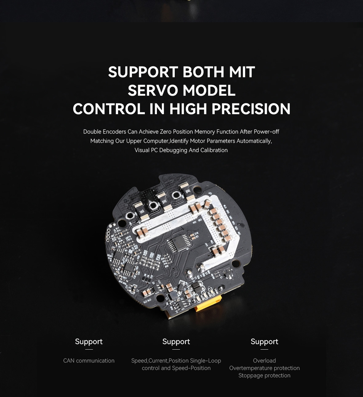 • For AK motors only(AK60-6 V1.1 only) _x000D_ • MIT or Servo control way _x000D_ • Support for Current, Speed, Position single loop or Position Speed multi-loop _x000D_ • 4-6S driver _x000D_