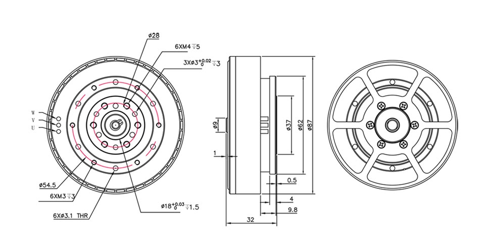 The motor base is equipped with threaded and through holes for versatile bi-directional mounting, accommodating various installation requirements. CubeMars is dedicated to innovation and quality, ensuring each product meets high customer standards through advanced manufacturing technologies and stringent quality control processes.