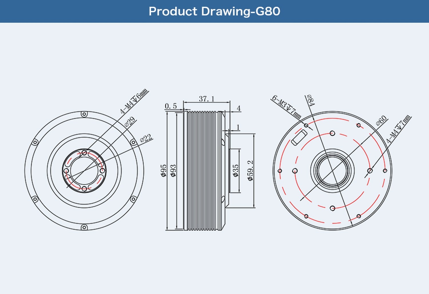 CubeMars G80 60kv Innenläufer Gimbal Brushless Motor 650g 24V
