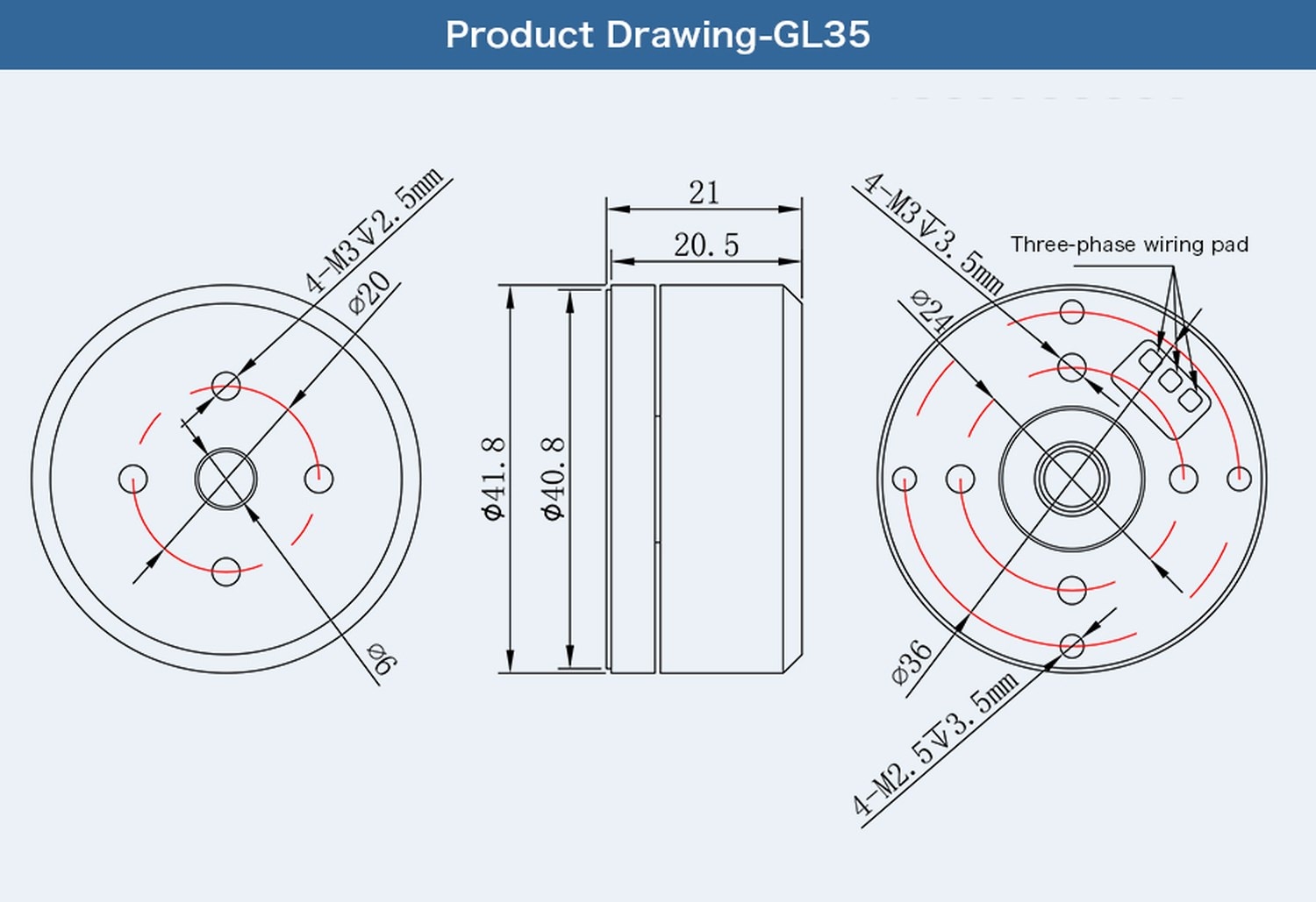 CubeMars GL35 100kv Außenläufer Gimbal Brushless Motor 16V - mit Encoder