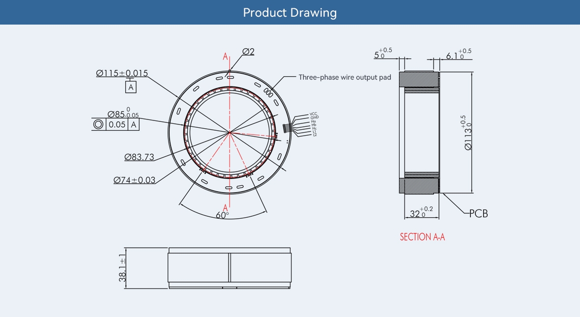 Moreover, this frameless inner-rotor motor excels in precision control and torque output, providing stable power output while maintaining high efficiency. It integrates Hall sensors and temperature sensing, enabling precise control during usage, significantly enhancing operational flexibility.