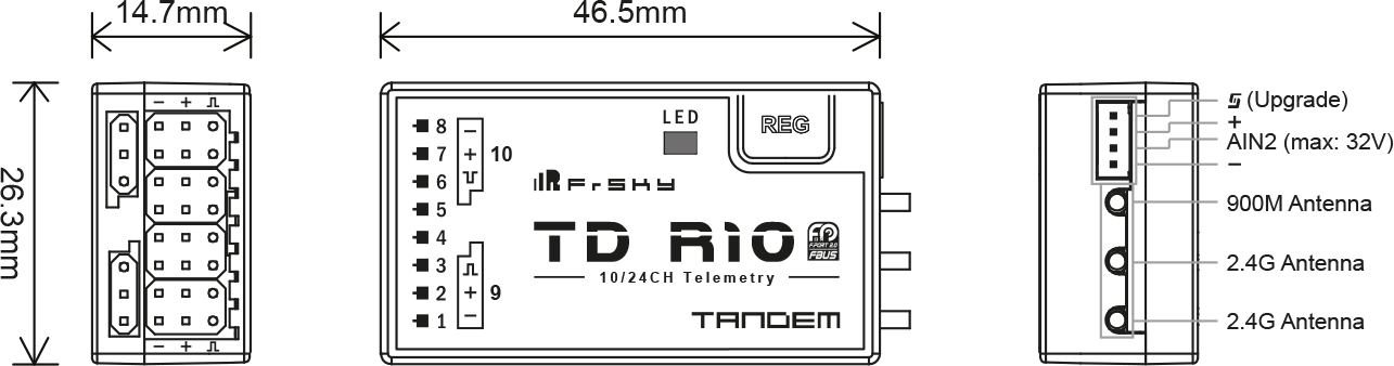 ### **FrSky TD R10 - 2.4 GHz & 868Mhz Tandem Empfänger**
