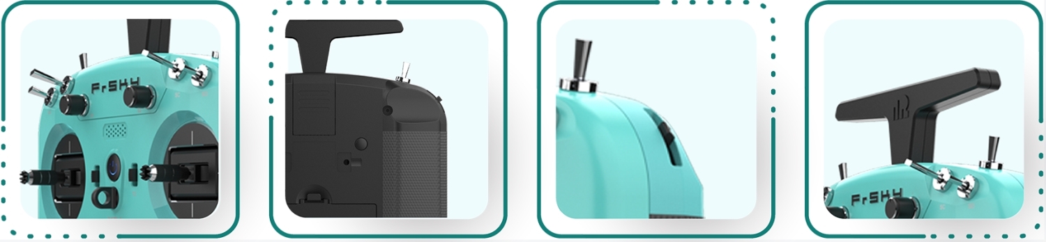 Zur weiteren Verbesserung seines benutzerfreundlichen Designs führt die TWIN X14 eine anbringbare und faltbare Halterung an der hinteren Schale ein. Dieses Design ermöglicht die einfache Installation eines zusätzlichen Ständerhalterzubehörs, wodurch die X14 nicht nur bequem getragen, sondern auch überall positioniert werden kann und so flexible Bedienung bietet, ohne den Sender in den Händen halten zu müssen.