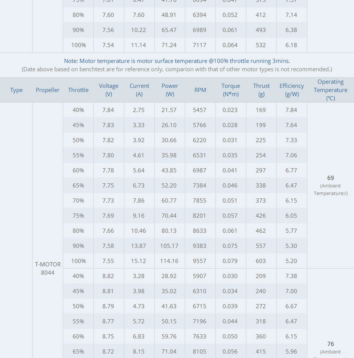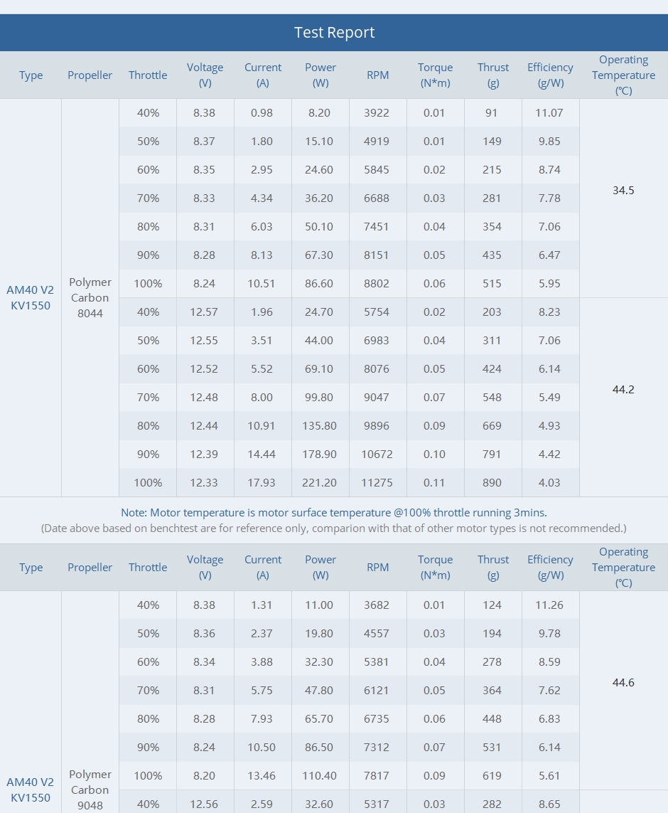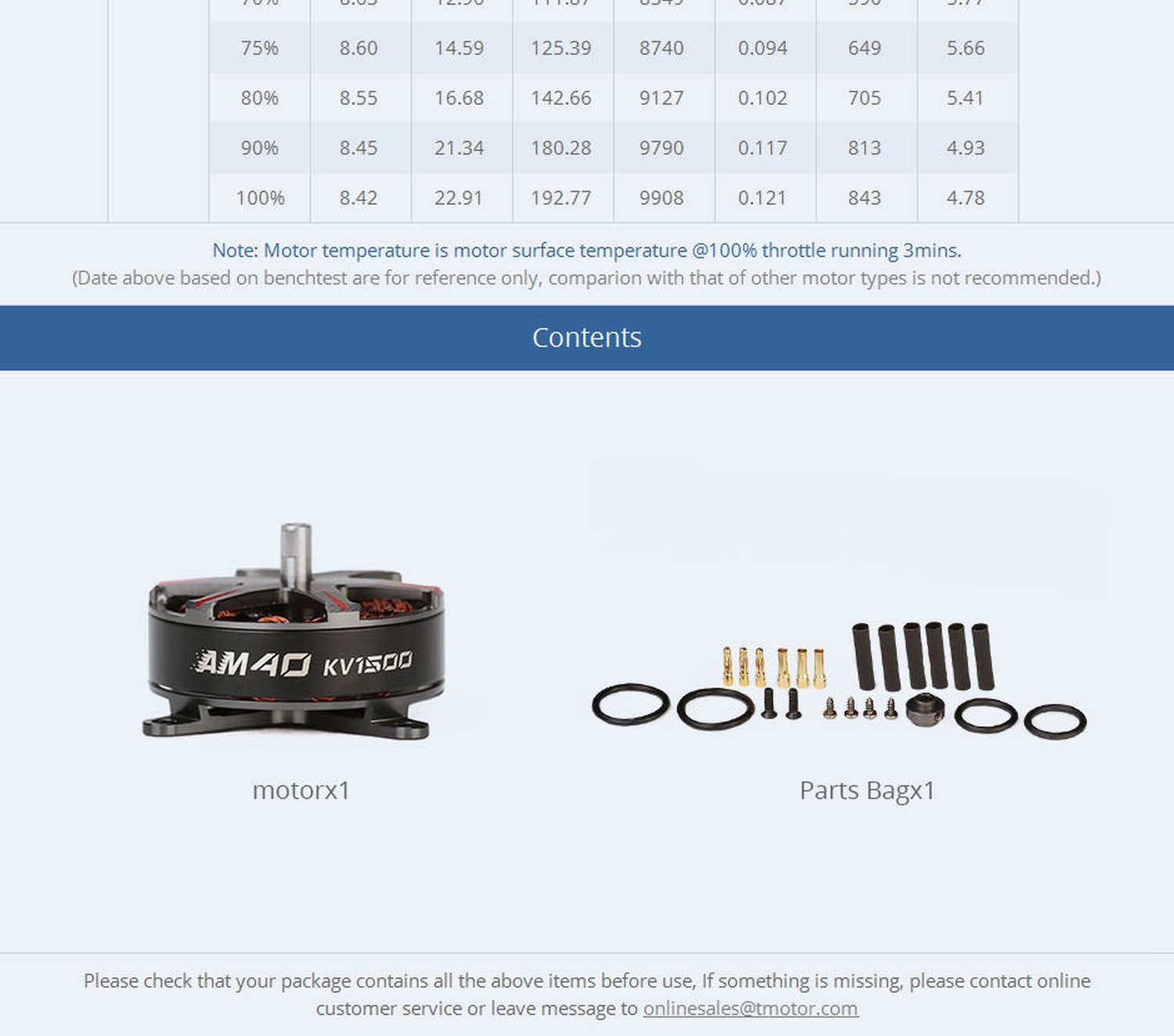 Technische Daten des T-Motor AM40 1500kv Motors: