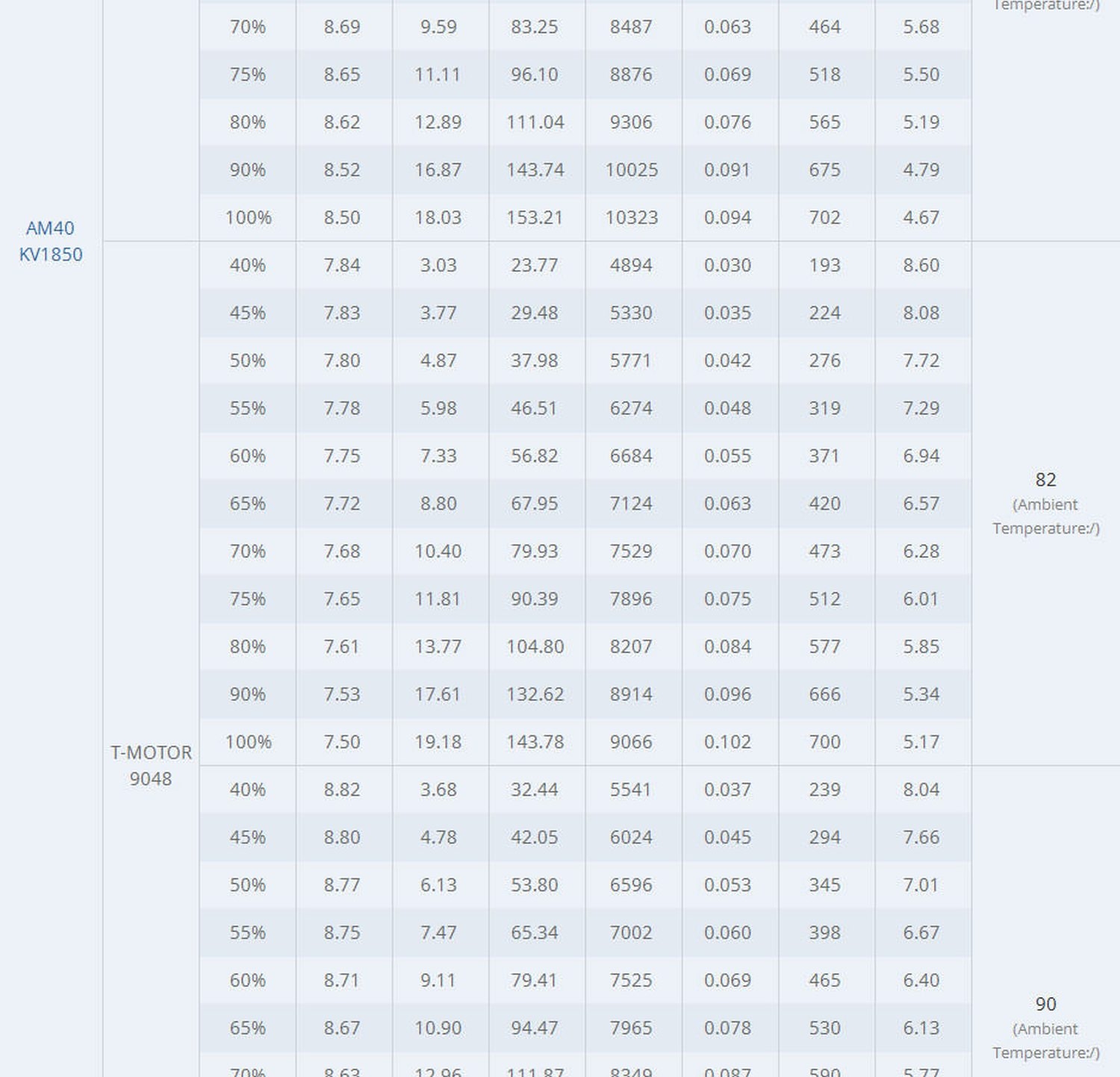 Technische Daten des T-Motor AM40 1850kv Motors: