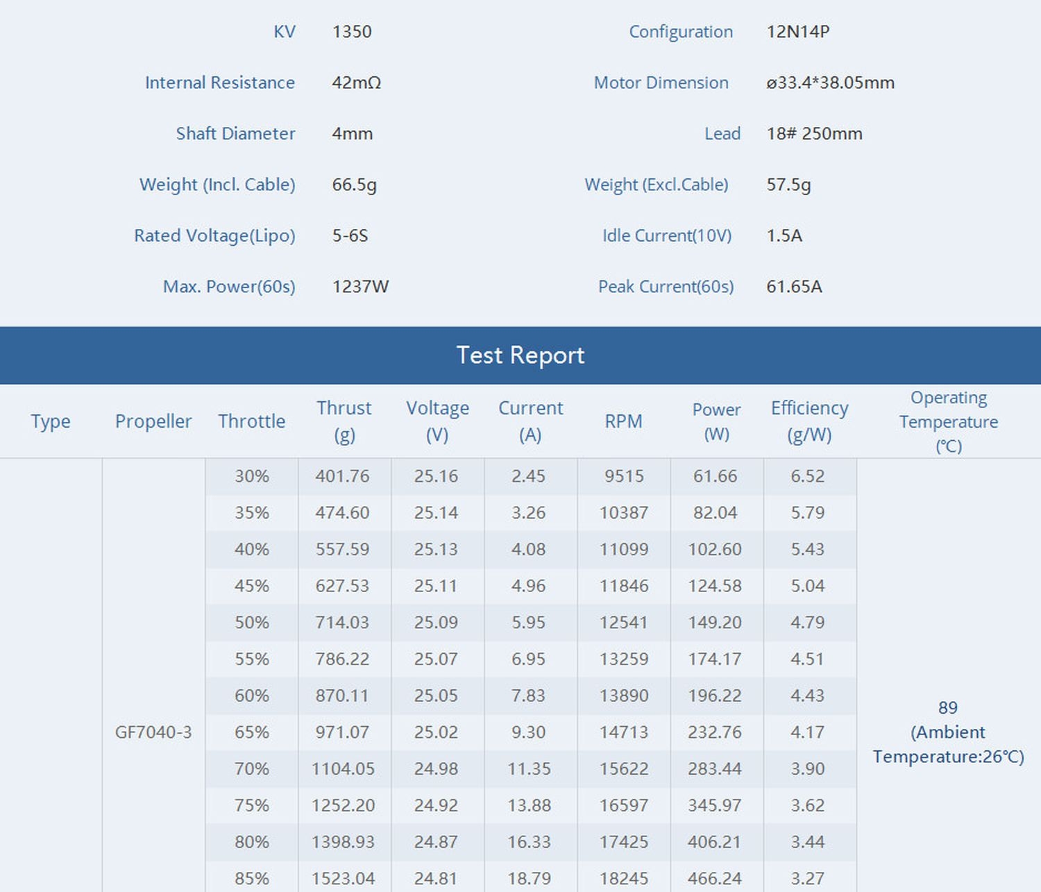 Technische Daten des T-Motor FPV Racing Motor F100 1350kv: