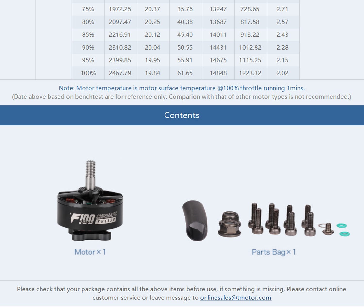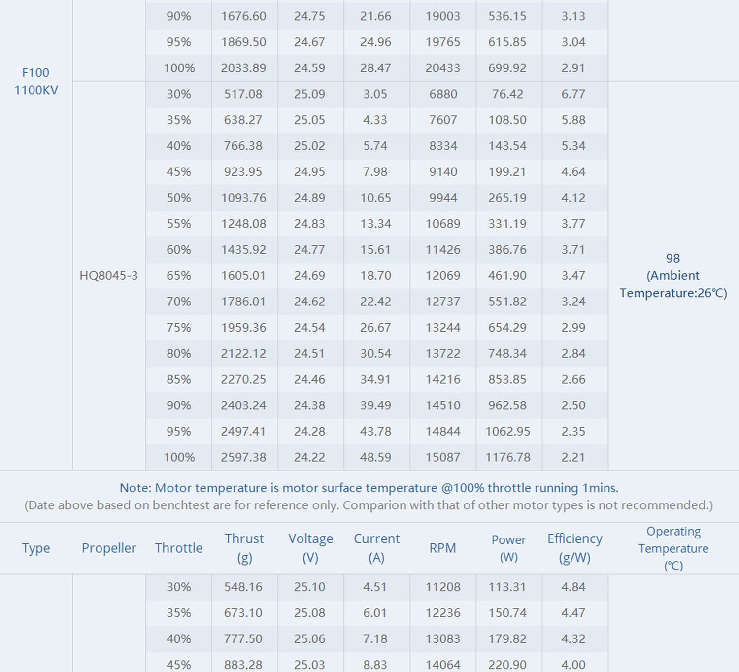 Technische Daten des T-Motor FPV Racing Motor F100 1100kv:
