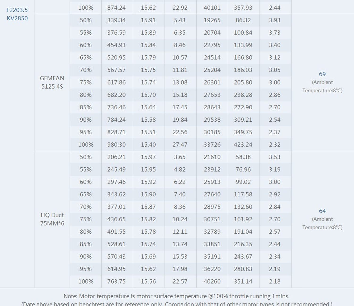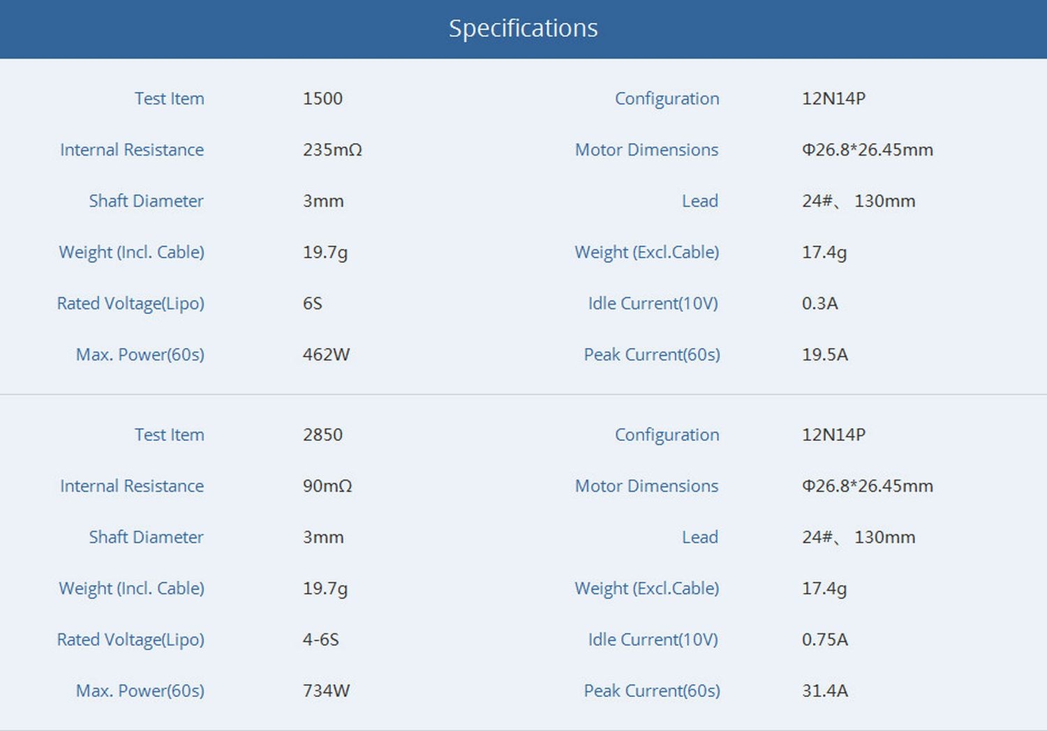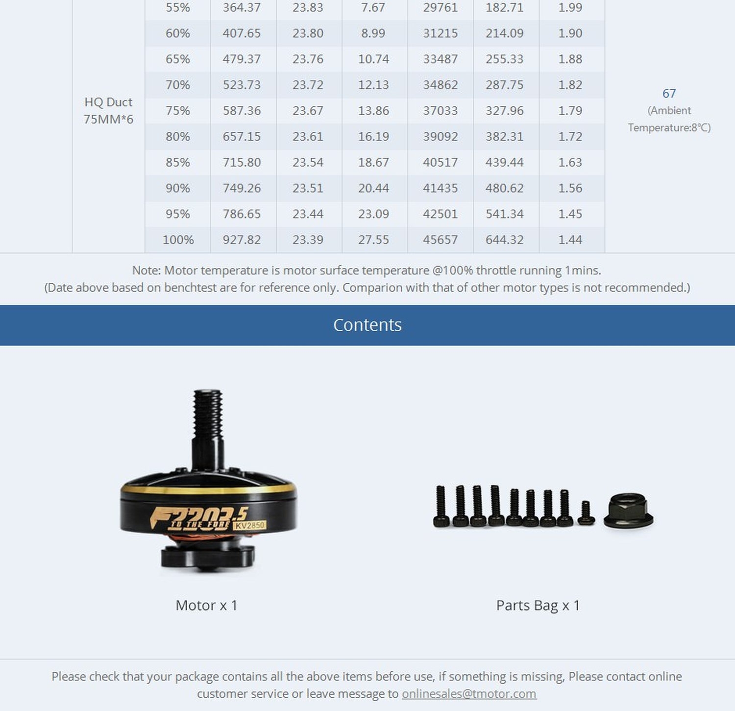 Technische Daten des T-Motor FPV Racing Motor F2203.5 2850kv: