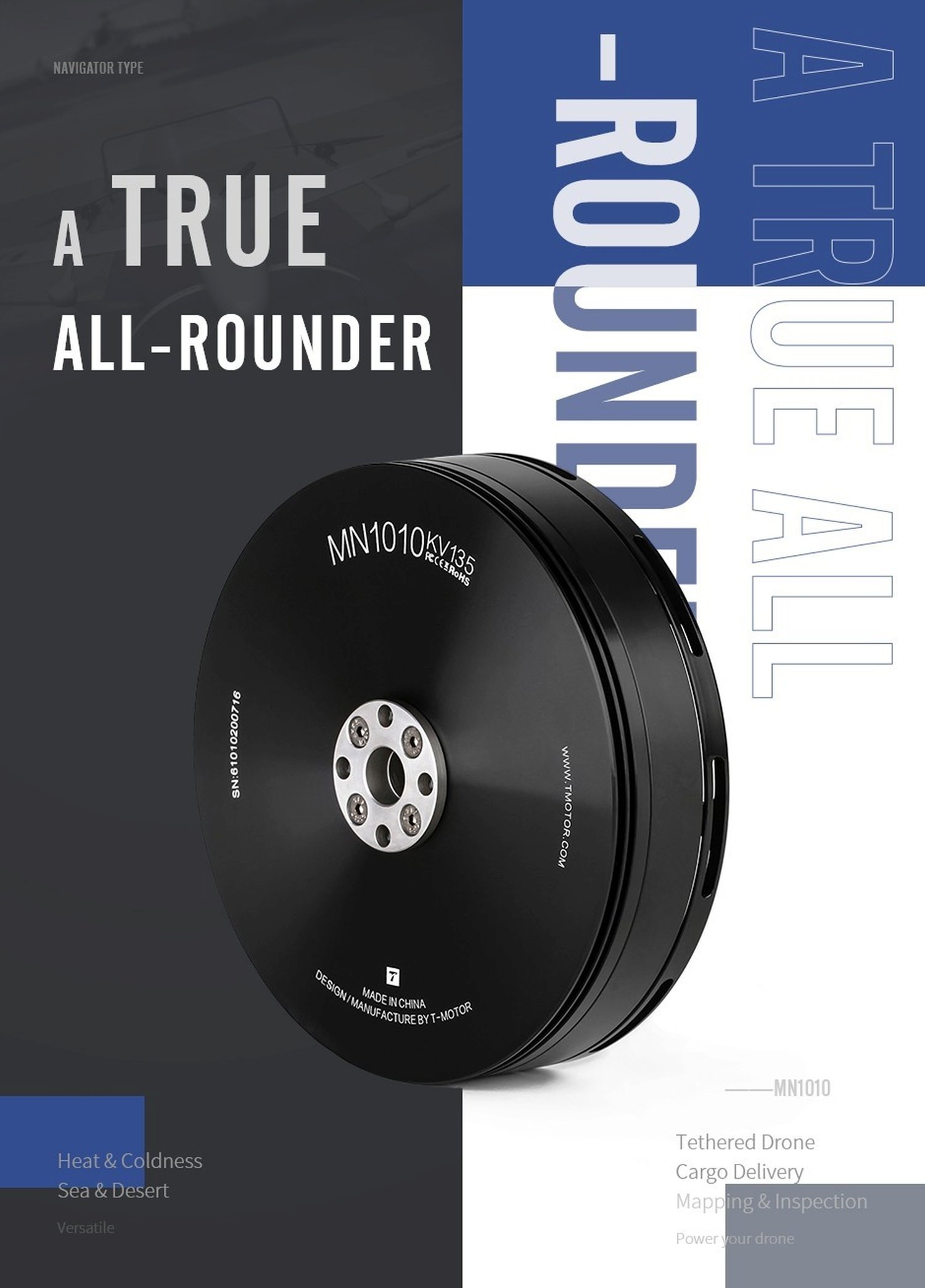 T-Motor Navigator MN1010 90kv Multicopter Brushless Motor 6S-12S 630g