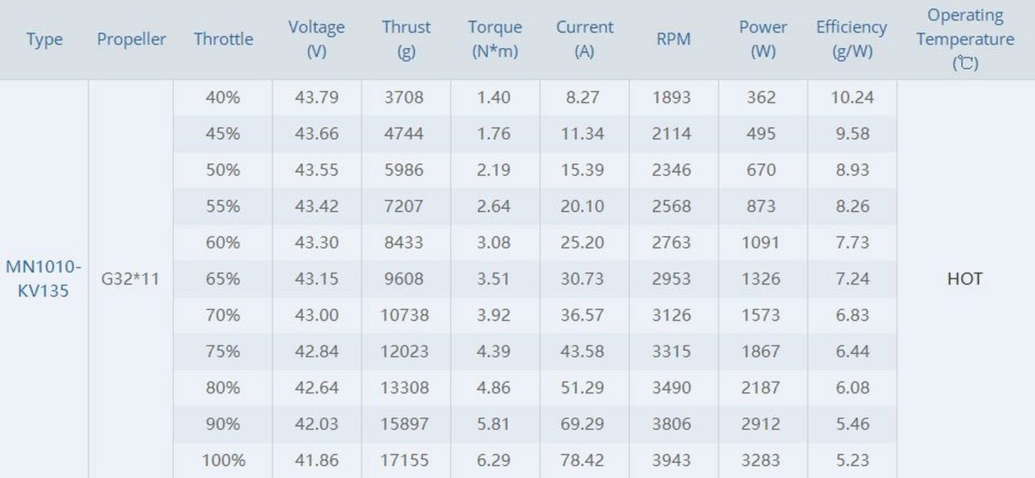 Technische Daten des T-Motor MN1010 135kv Motors:KV: 135kv
