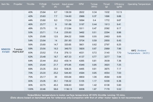 Technische Daten des T-Motor MN605-S 320kv Motors:KV: 320kv