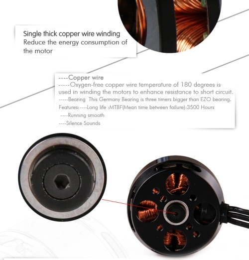 Alle Motoren werden mit 60cm Kabellänge sowie fertig verlöteten 3,5mm Goldsteckern ausgeliefert und lassen sich damit auch in größeren Coptern schnell und einfach montieren.