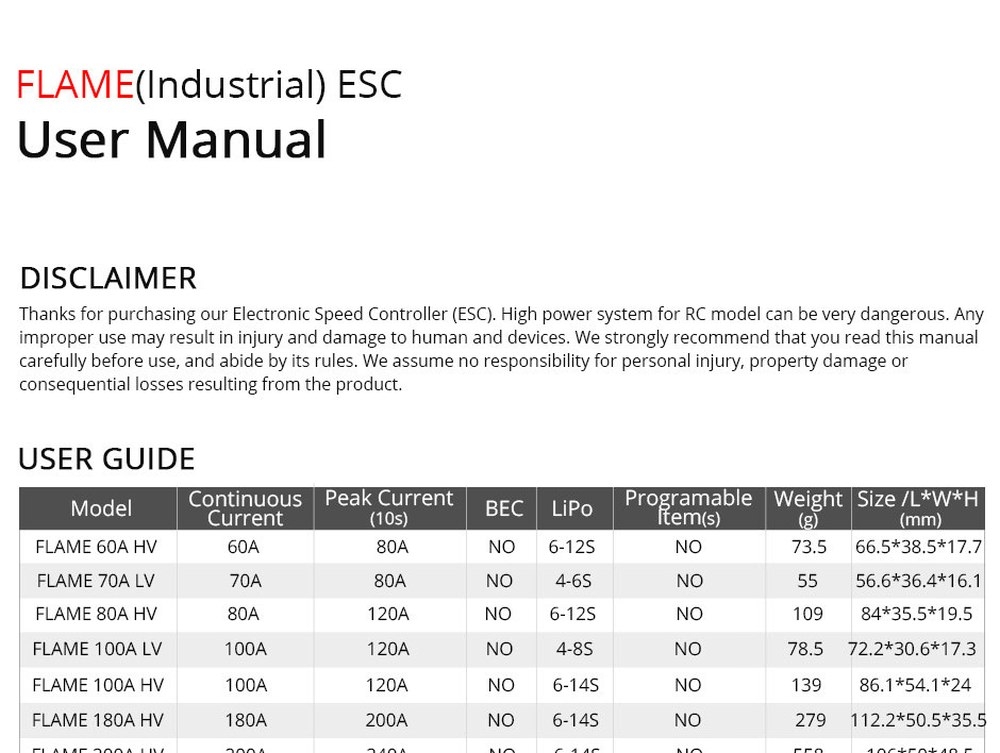 Technische Daten des Flame 80A HV V2.0 Reglers:Spannung: 18V-50,4V (6S-12S Lipo)