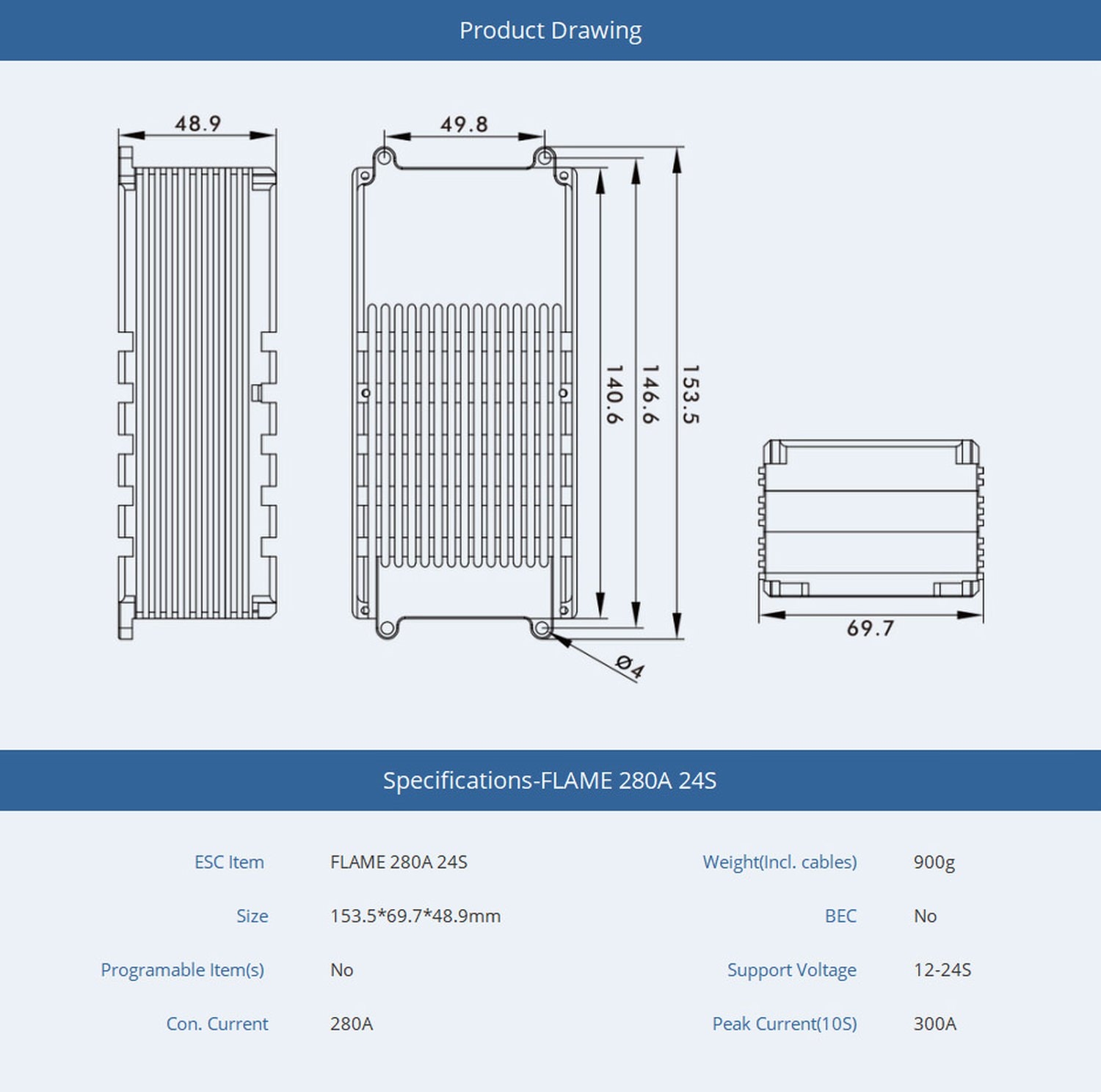 Technische Daten des Thunder 300A HV 24S Reglers:Spannung: 12S-24S Lipo