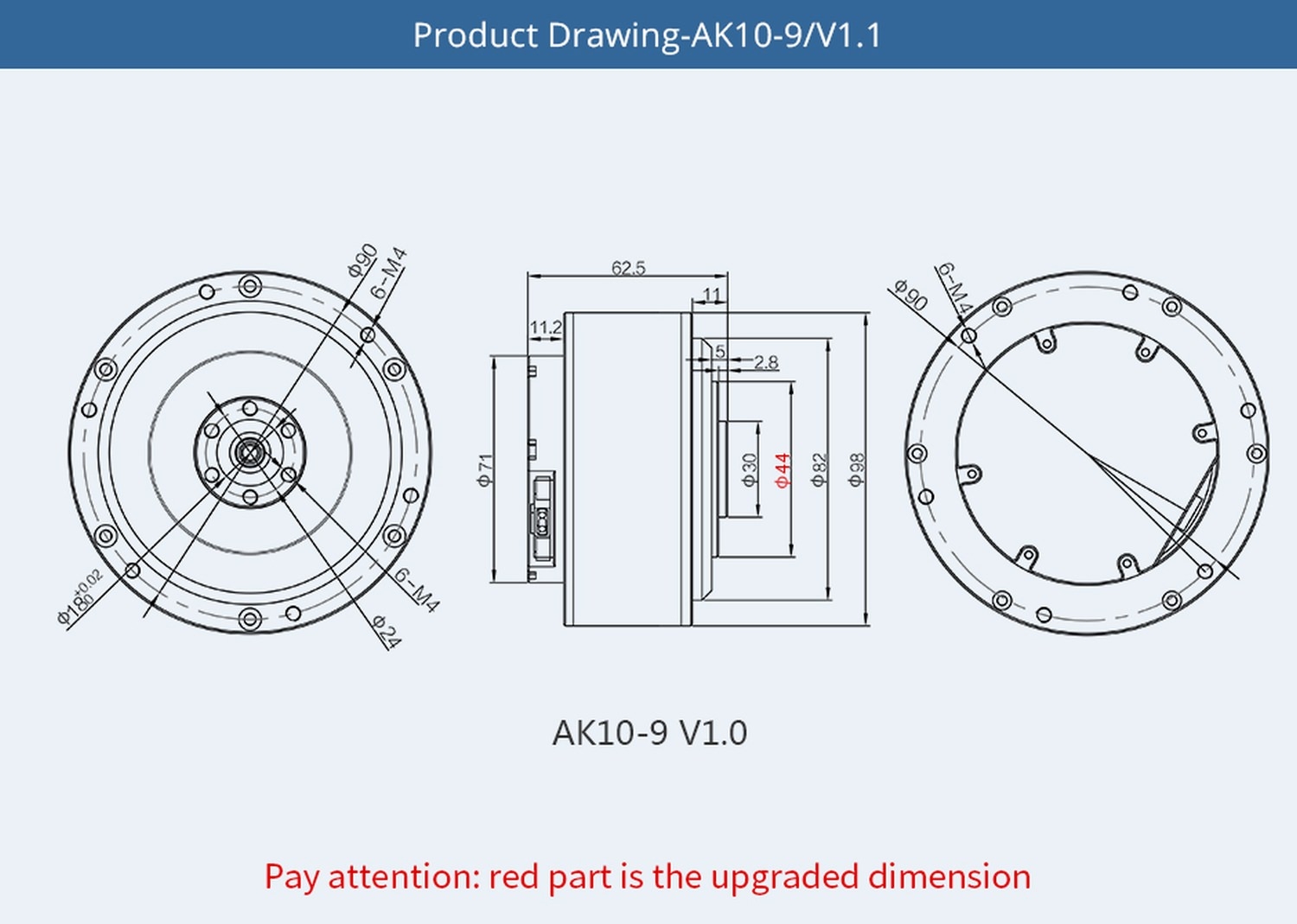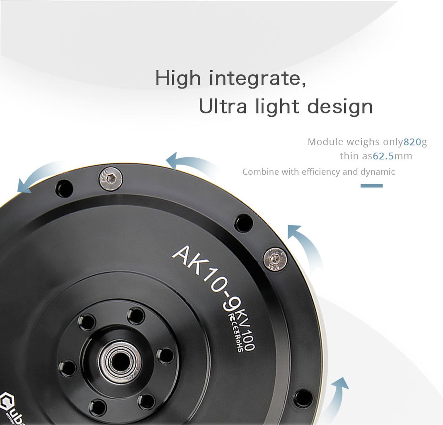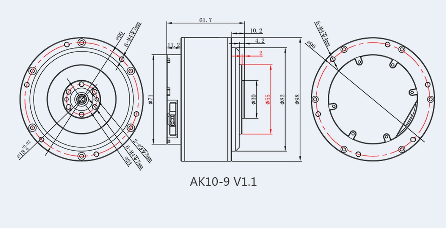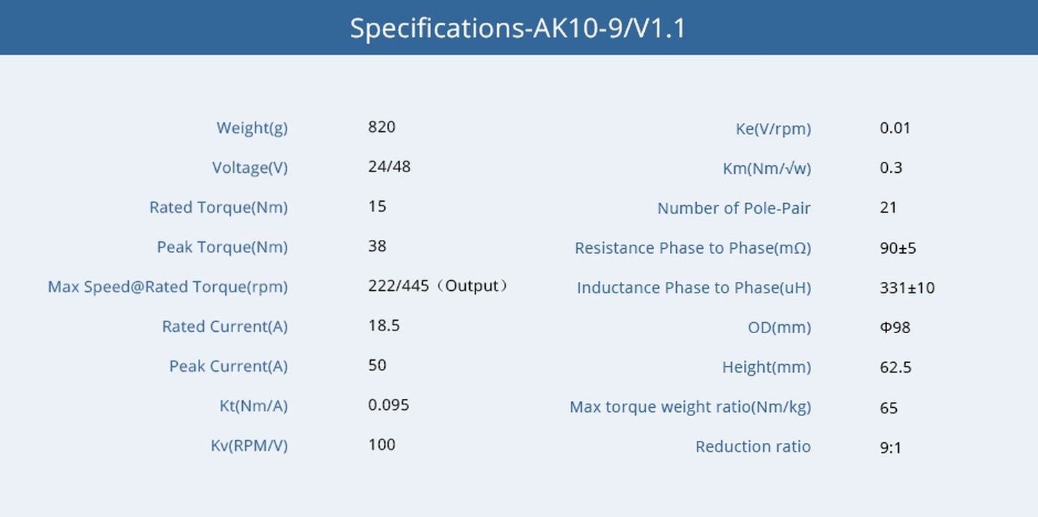 T-Motor AK10-9 V1.1 100kv Brushless Motor + Encoder + Treiber 9:1 24V-48V 820g CubeMars - Übersichtsseite