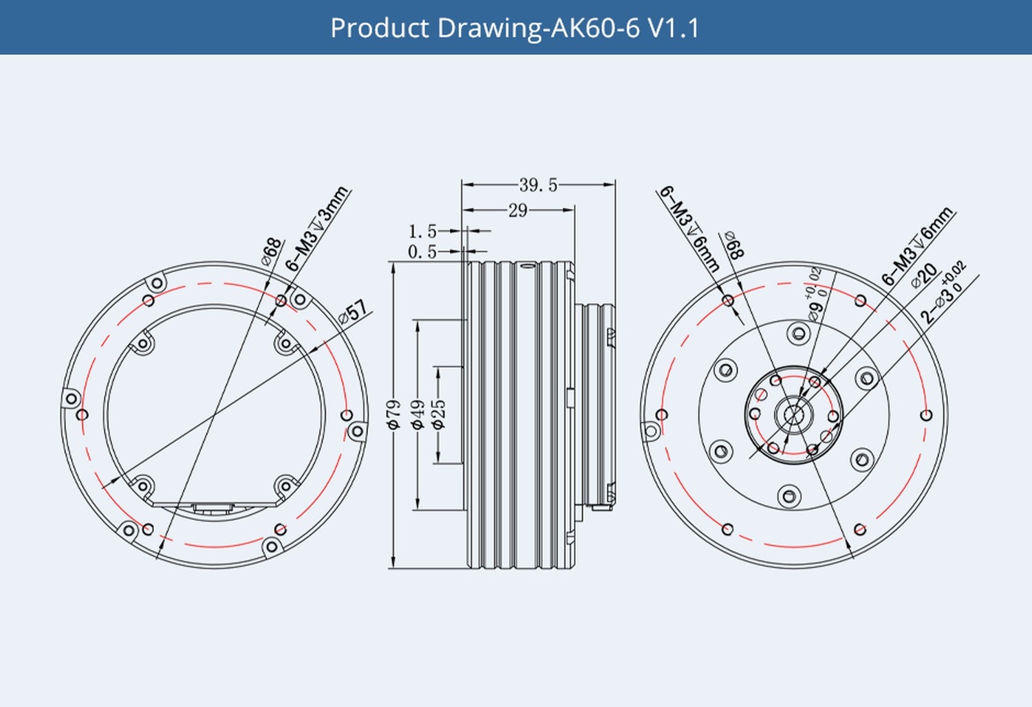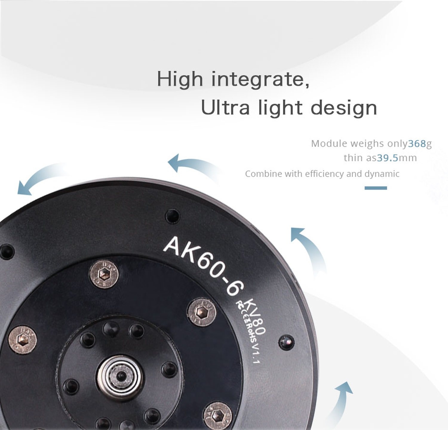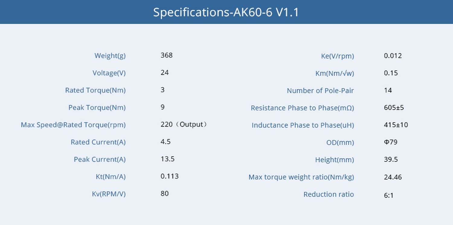 T-Motor AK60-6 V1.1 80kv Brushless Motor + Encoder + Treiber 6:1 24V 368g CubeMars - Übersichtsseite