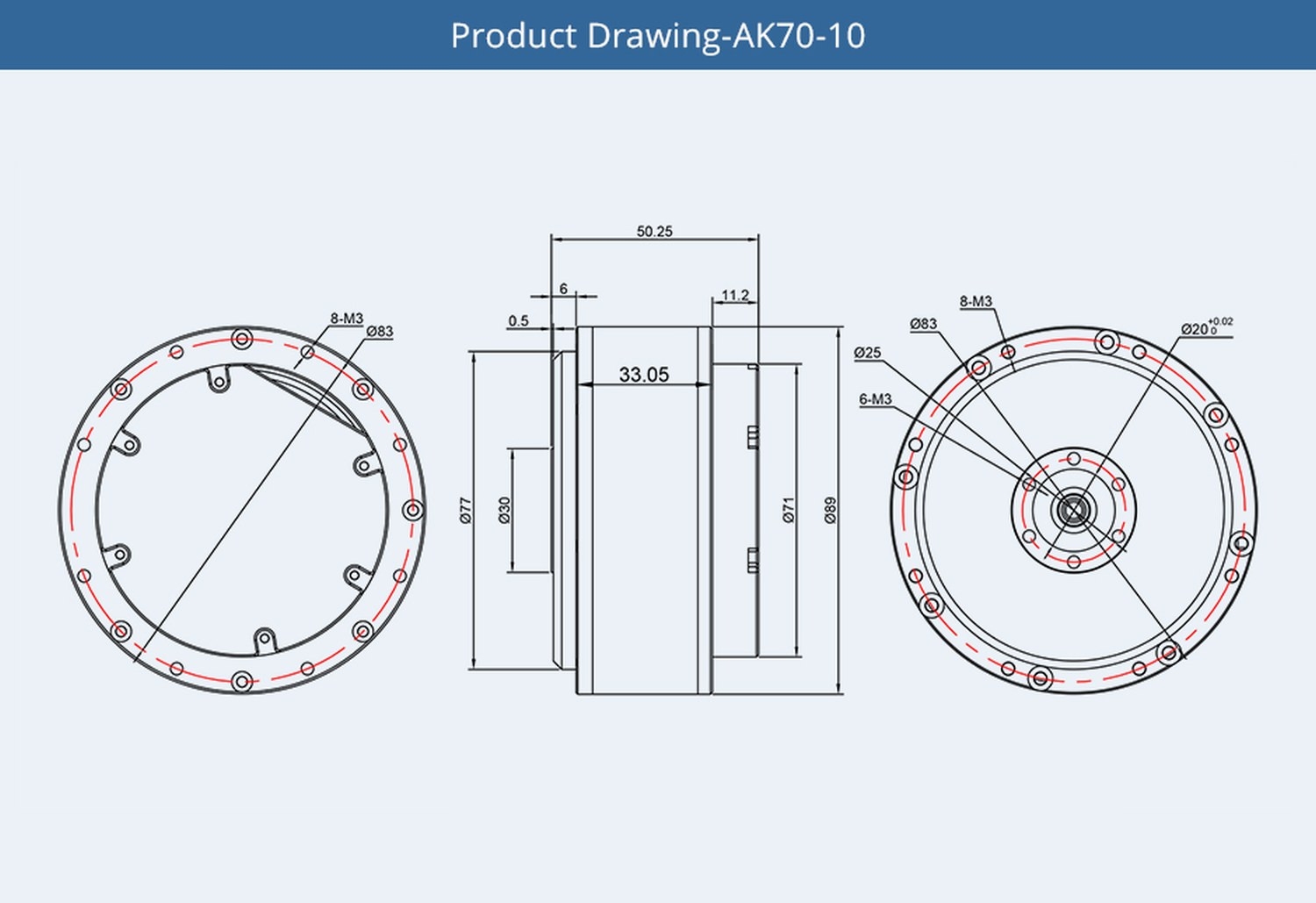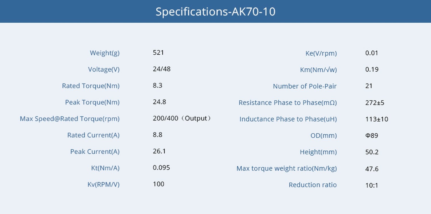 T-Motor AK70-10 100kv Brushless Motor + Encoder + Treiber 10:1 24V-48V 521g CubeMars - Übersichtsseite