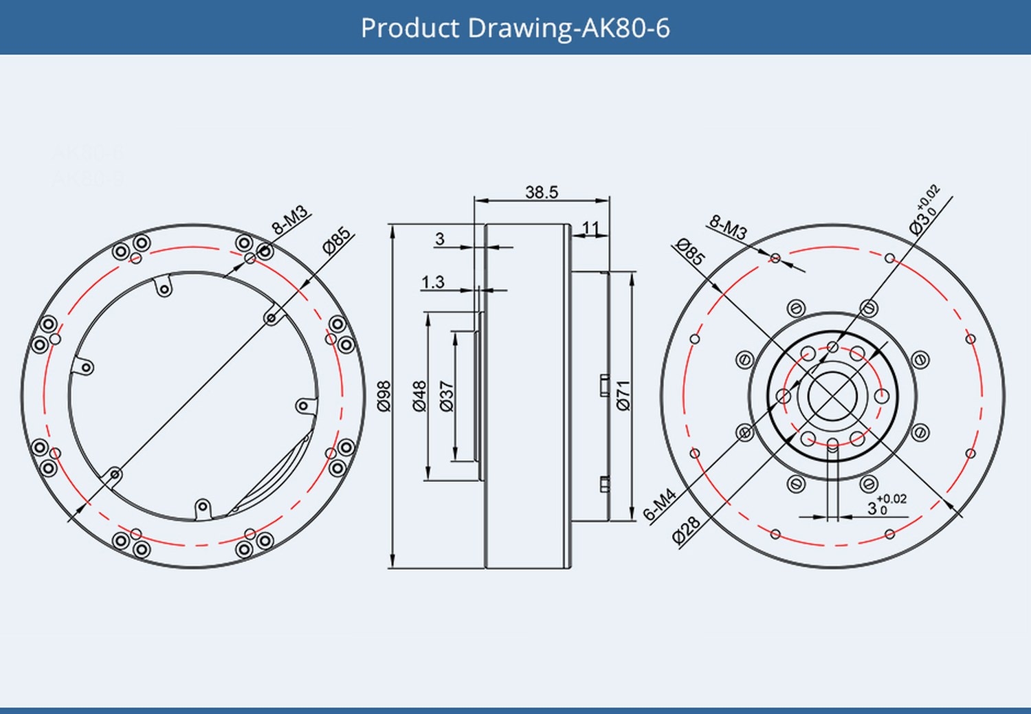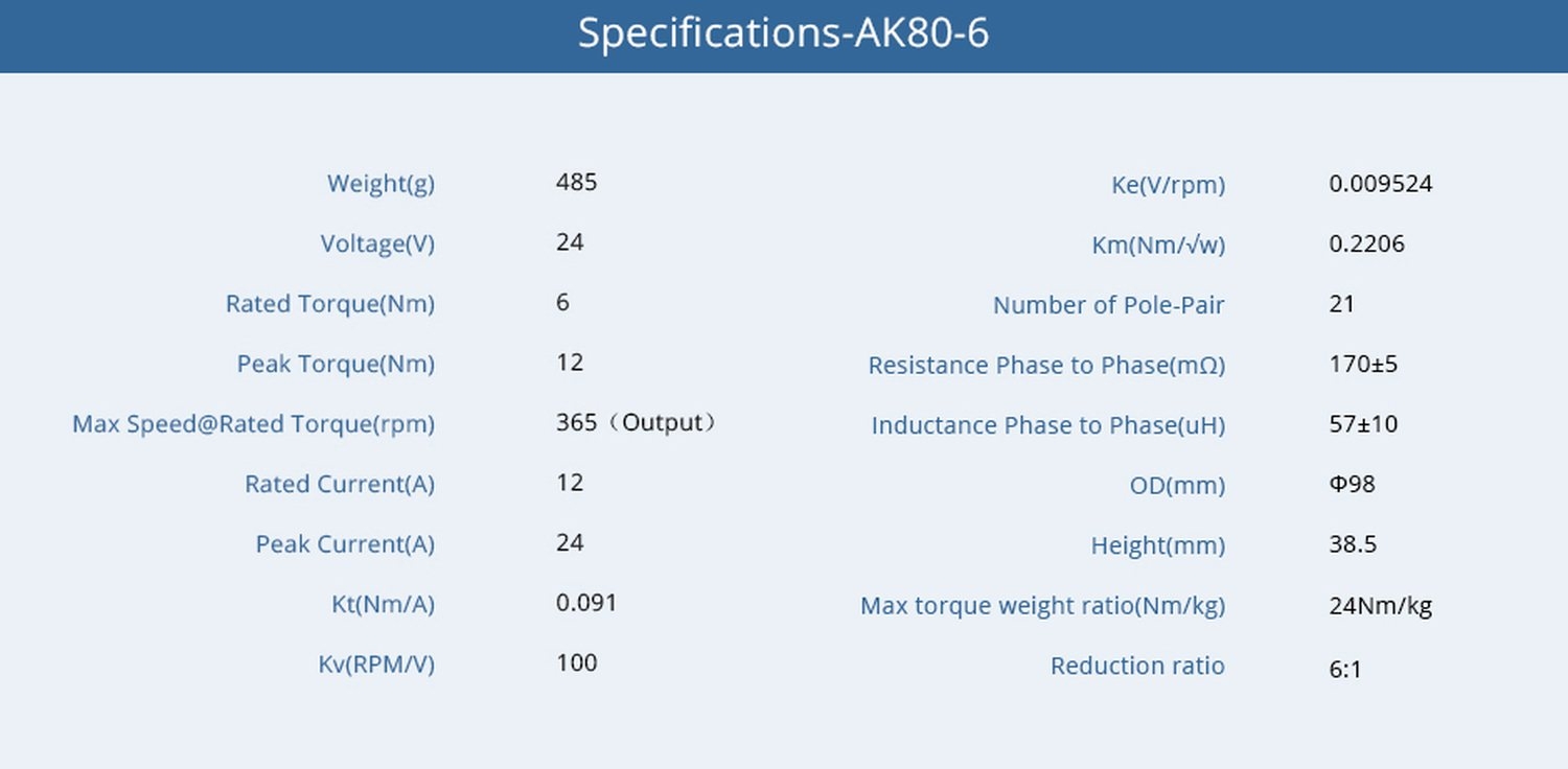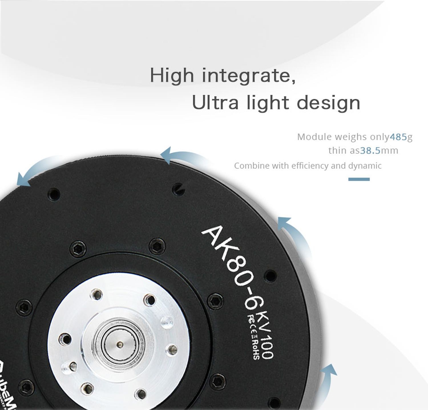 T-Motor AK80-6 100kv Brushless Motor + Encoder + Treiber 6:1 24V 485g CubeMars - Übersichtsseite