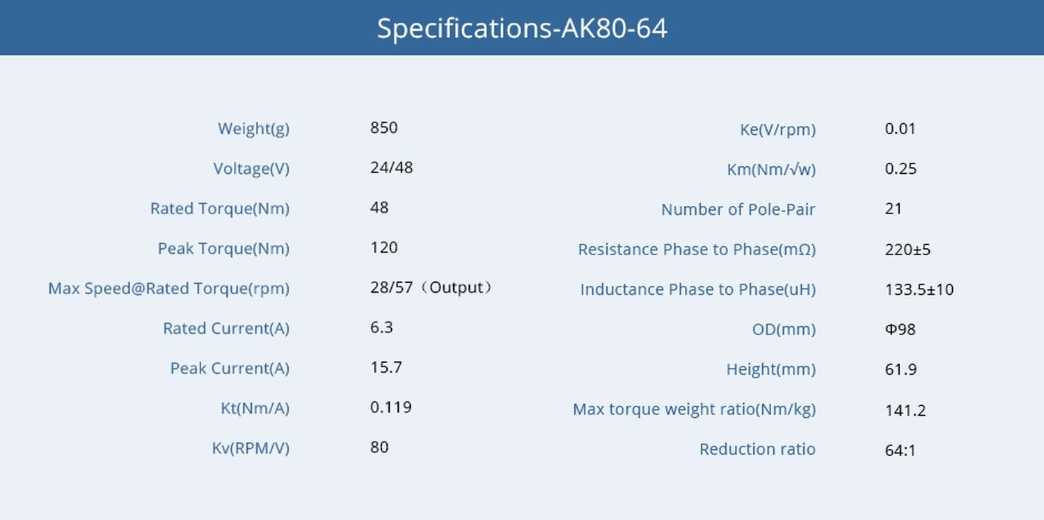 T-Motor AK80-64 80kv Brushless Motor + Encoder + Treiber 64:1 24V-48V 850g CubeMars - Übersichtsseite
