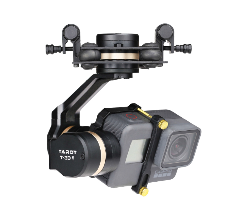 Die T-3DV 3 Achsen Gimbal ist für den Multicopter Enthusiasten ausgelegt und kann an vielen verschiedenen Modellen eingesetzt werden. Das Gimbal verfügt über zwei verschiedene Betriebsmodi und ist für die Nutzung mit einer GoPro 5 Kamera ausgelegt. Die GoPro 5 bietet keinen analogen Live-Out, das Gimbal übernimmt daher rein die Stabilsieriungsfunktion.