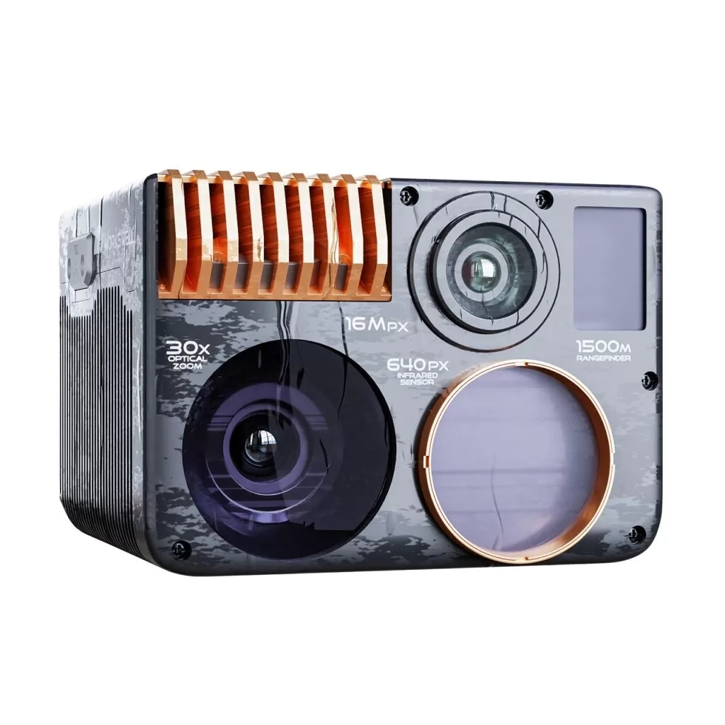 Eingeschlossen in einem robusten Gehäuse aus leichtem Aluminium. Darüber hinaus wird das empfindlichste Bauteil des Gesamtsystems, das Objektiv der Wärmebildkamera, durch eine auswechselbare Schutzkappe aus Germanium geschützt.