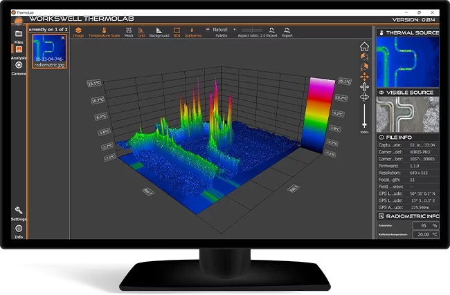 Wie alle WIRIS Kameras von Workswell arbeitet auch die WIRIS Pro-Wärmebildkamera auf der Basis der speziell entwickelten WIRIS OS-Plattform. Workswell hat das WIRIS OS entwickelt um die Sicherheit der WIRIS-Systeme gewährleisten zu können und um die Diagnose-Fähigkeiten zu verbessern. Das WIRIS OS ist die einzige Software, die die maximale Ausnutzung der WIRIS Pro Hardware ermöglicht. Die Kombination aus Workswell Hardware und Workswell Software bietet fortschrittliche Messfunktionen, die von keinem anderen am Markt erhältlichen Produkt in dieser Form dargeboten werden.