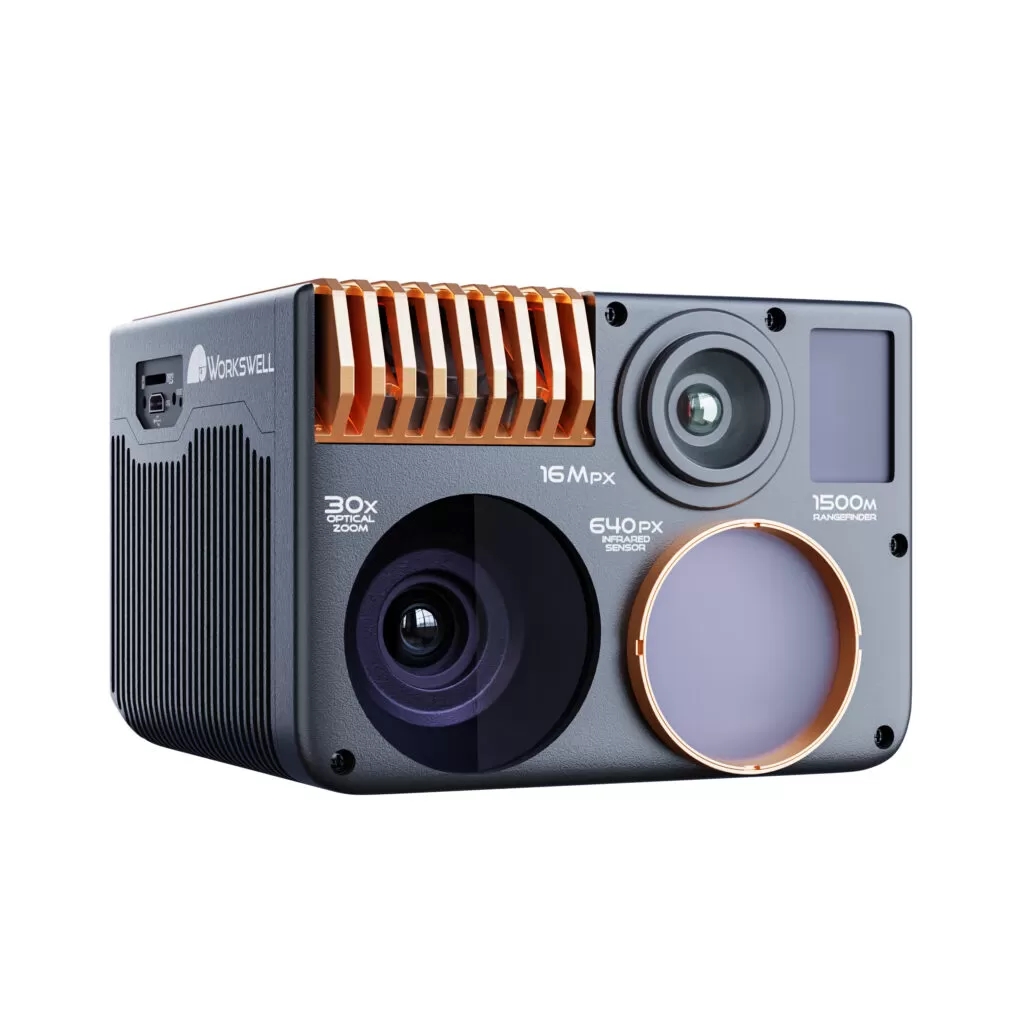 Die Workswell WIRIS® Enterprise ist eine Multisensorkamera, die speziell für den Einsatz mit unbemannten Luftfahrzeugen (UAV) oder Drohnen entwickelt wurde. Das WIRIS OS und die integrierten Sensoren bieten beispiellose Luftbildfähigkeiten für eine Reihe von kommerziellen Drohnenanwendungen, darunter thermische Inspektionen, Sicherheitsanwendungen, Brandbekämpfung, geologische, archäologische, forstwirtschaftliche Studien, ökologische und Umweltforschung.