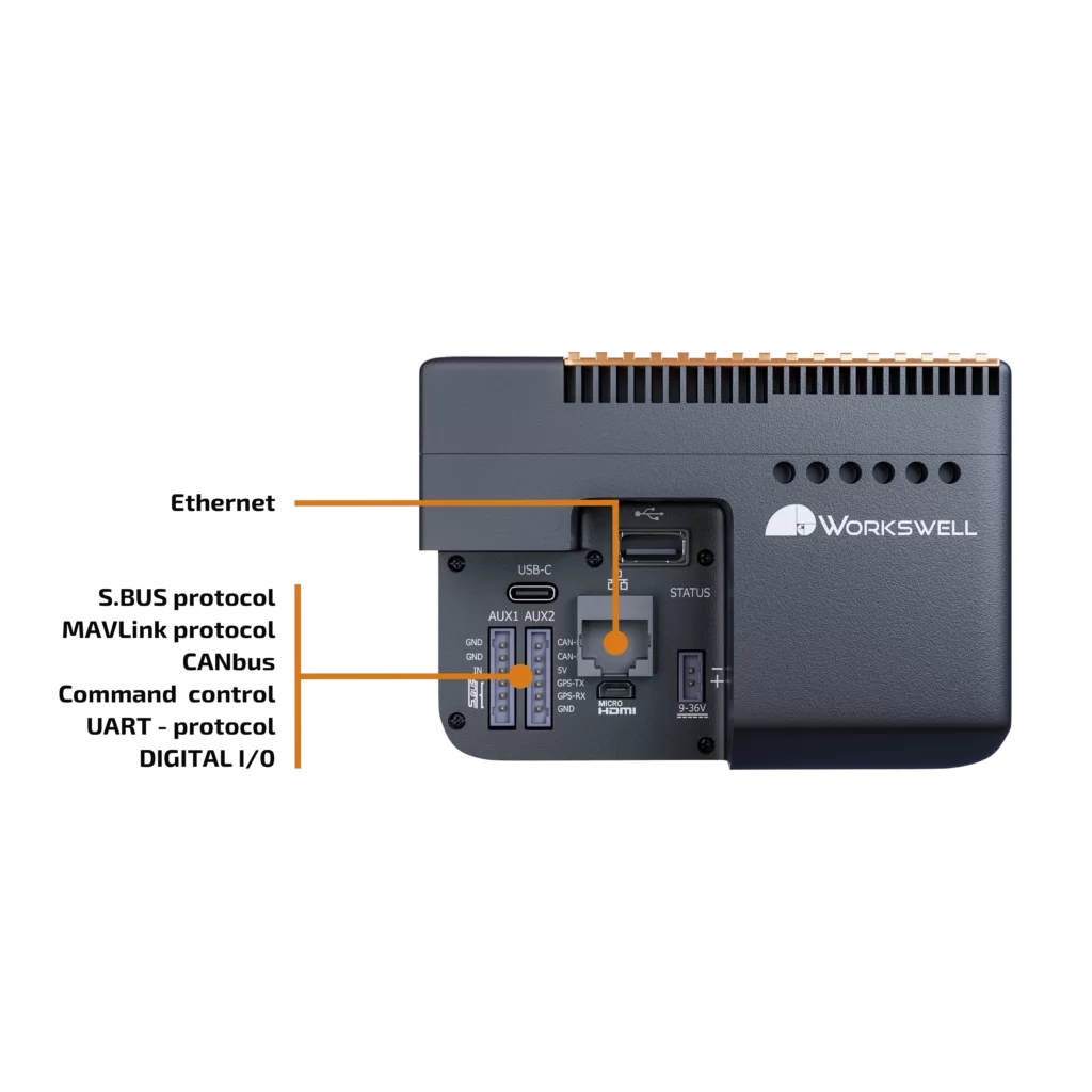 Die Workswells WIRIS Pro bietet eine Schnittstelle, die die unterschiedlichsten Verbindungen zur Drohne, der Steuereinheit, einem externen GPS-Sensor und anderen Geräten ermöglicht. Wir bieten ein Wi-Fi-Live-Videostreaming mit geringer Latenz und eine Steuerungsverbindung, und das WIRIS Stream SDK ist ebenfalls verfügbar.